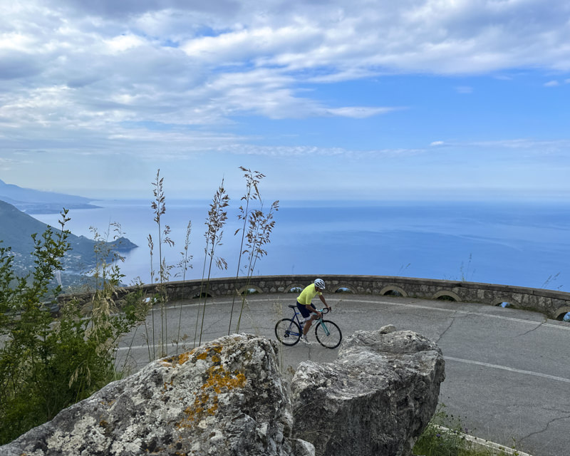 We are captivated by a landscape that has mountains and limestone cliffs which fall into the sea, and the Cilento has just that. It is dramatic and stunning in equal measures.  When riding, there are parts of this region where you’ll reach 600m above sea level in just 2km and there are other areas where it may take you 20km to reach a peak of 1000m. Either way, both illustrate the landscape superbly and captivate you in unique ways.