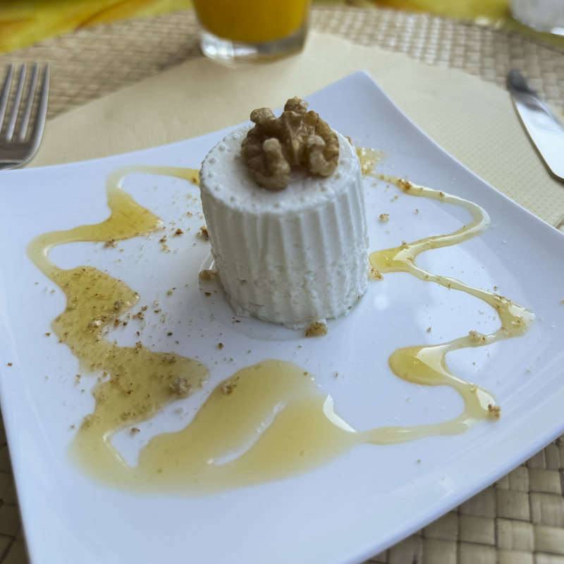 • A fresh little buffalo ricotta with honey and locally grown walnuts at breakfast