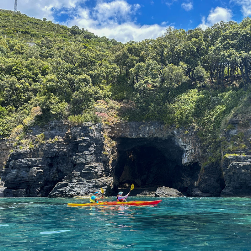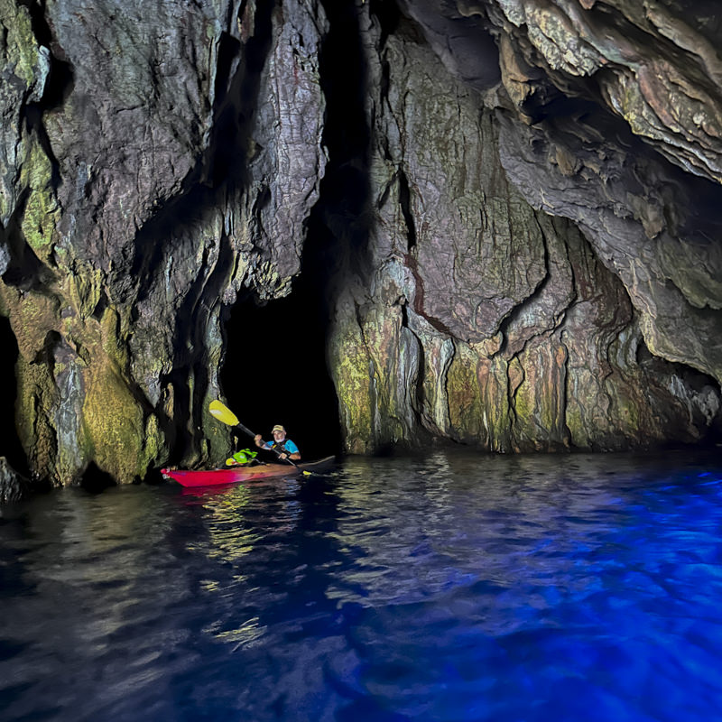 Crystal clear and in many shades of sapphire, emerald and turquoise, it is absolutely spellbinding to be in or on the water along this coastline. Paddling with a kayak or SUP and exploring the rugged coast and its many little grottoes is one thing, but being able to swim inside a grotto in the early morning, with no-one around and only the gentle waves and shimmering sunlight rolling in, now this is pure delight.